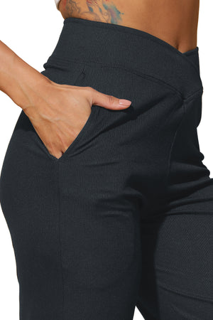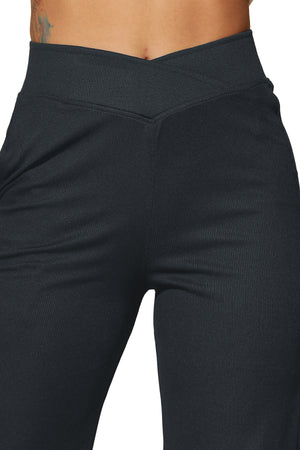Elevate your travel routine with our women's bell-bottom pajama, crafted in plush rib fabric for a stylish yet comfy feel. The striking silhouette resonates with a retro vibe while promising modern comfort. A fitted elastic waistband ensures a tailored fit, enhancing your relaxation experience.