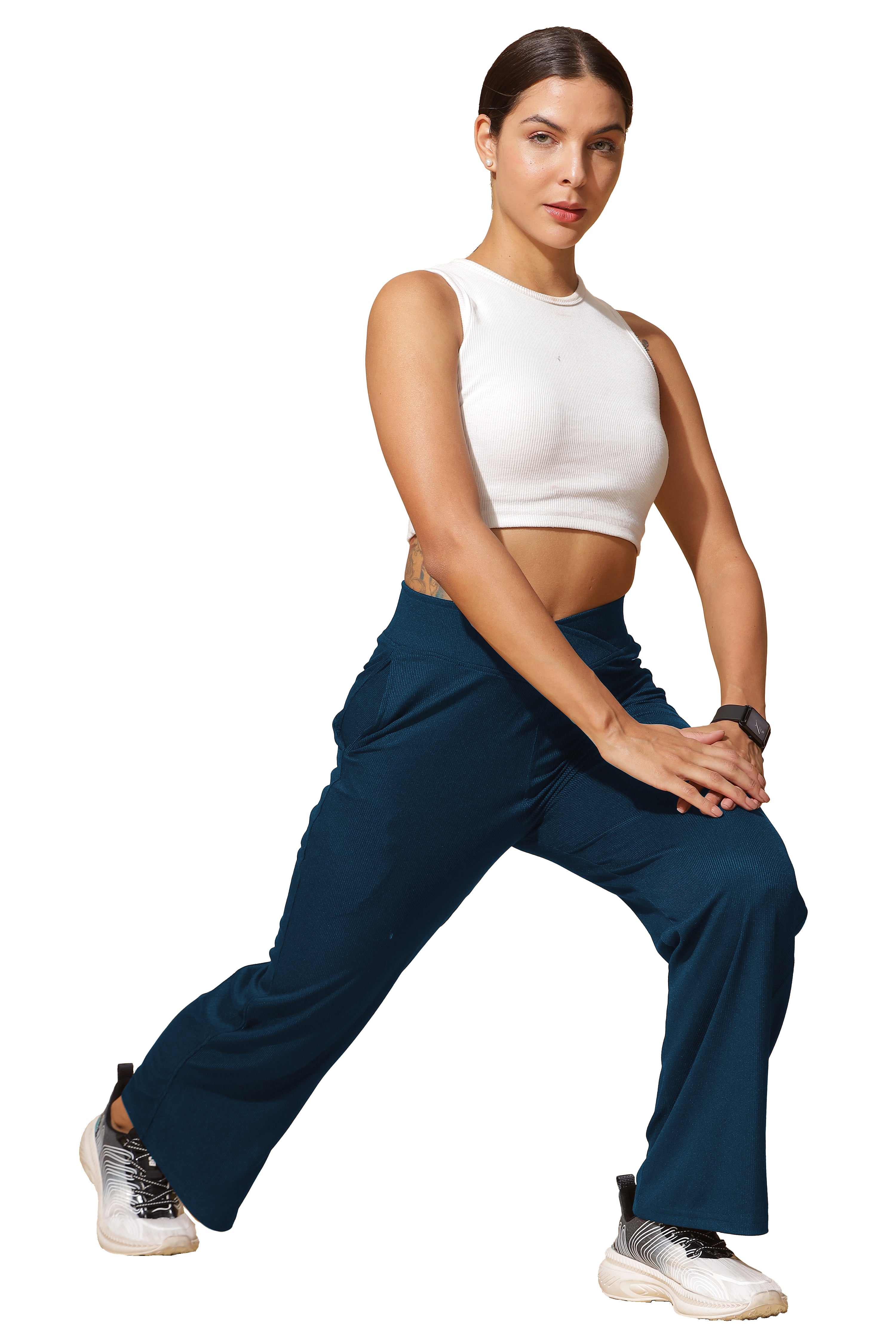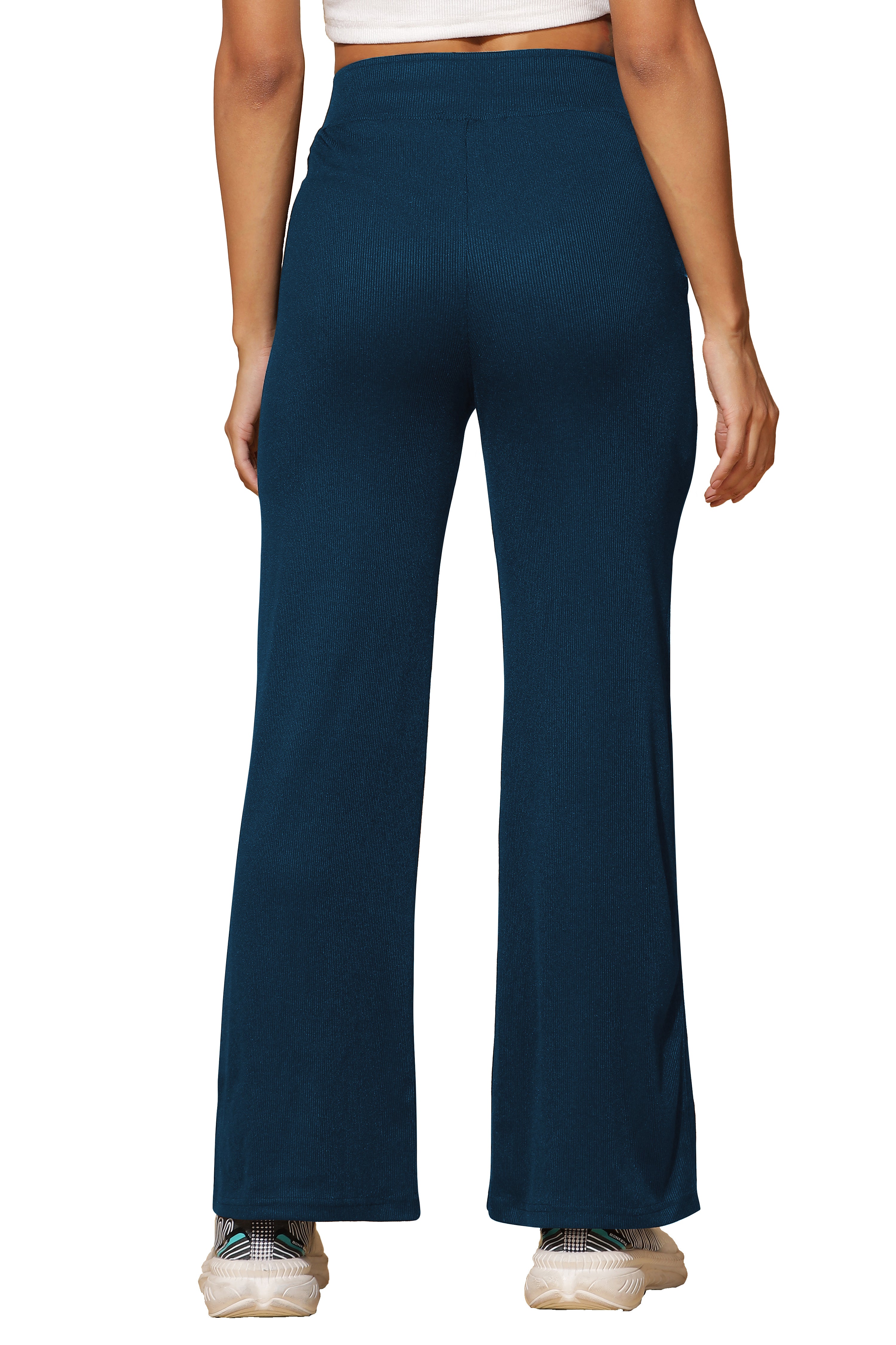 Elevate your travel routine with our women's bell-bottom pajama, crafted in plush rib fabric for a stylish yet comfy feel. The striking silhouette resonates with a retro vibe while promising modern comfort. A fitted elastic waistband ensures a tailored fit, enhancing your relaxation experience.