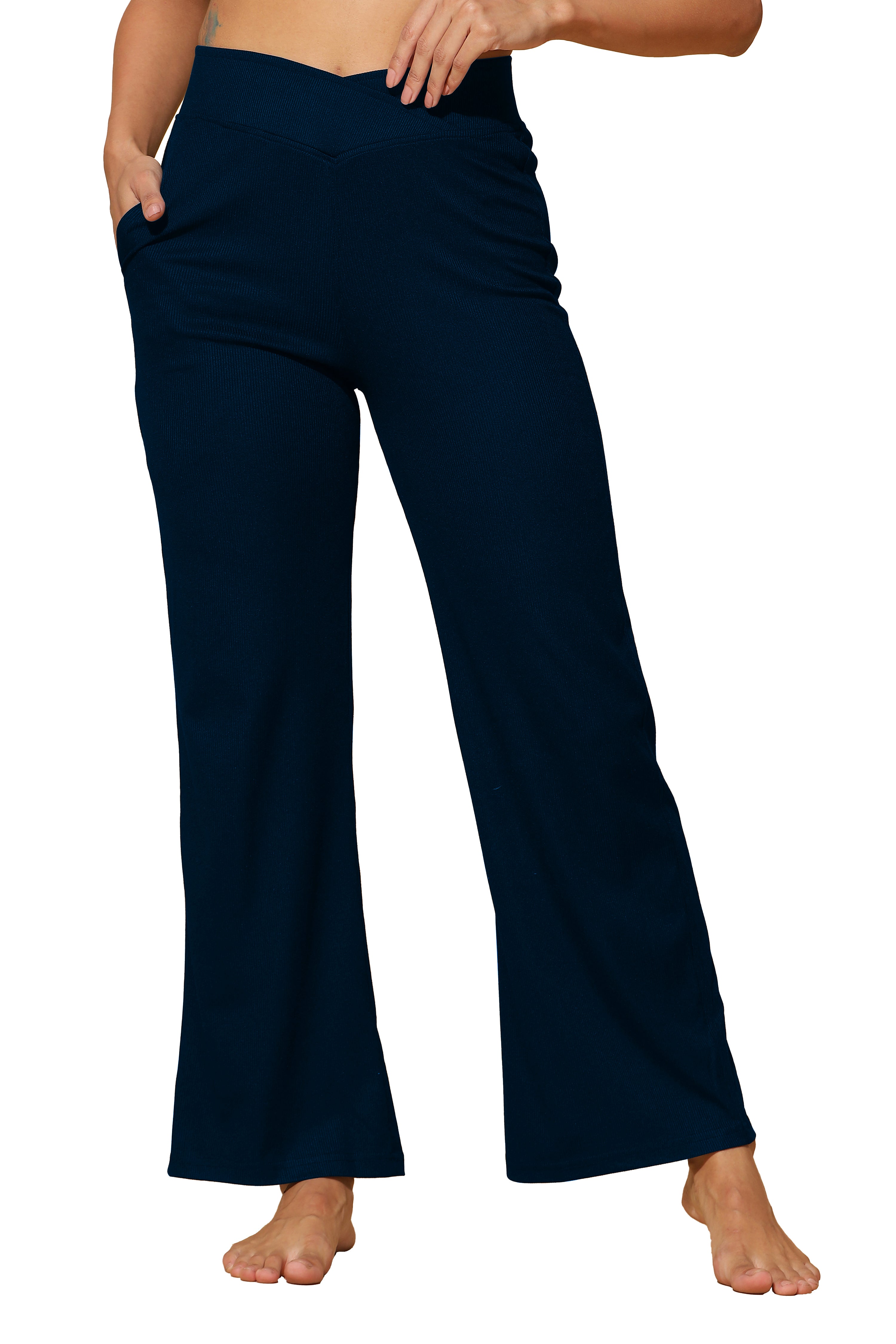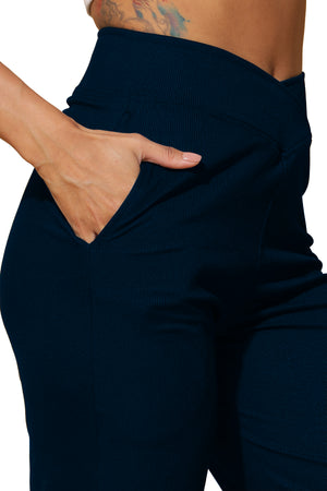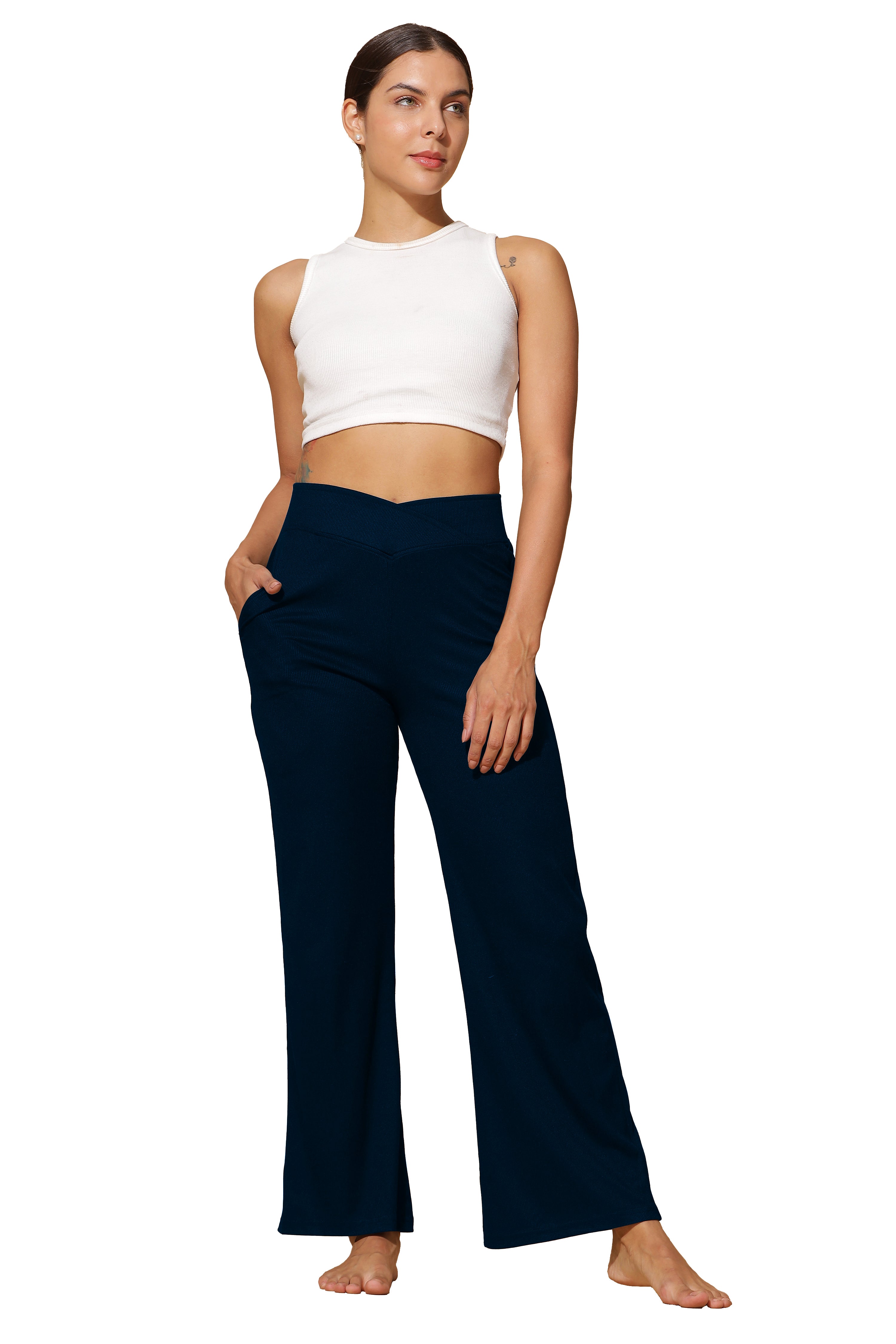 Elevate your travel routine with our women's bell-bottom pajama, crafted in plush rib fabric for a stylish yet comfy feel. The striking silhouette resonates with a retro vibe while promising modern comfort. A fitted elastic waistband ensures a tailored fit, enhancing your relaxation experience.